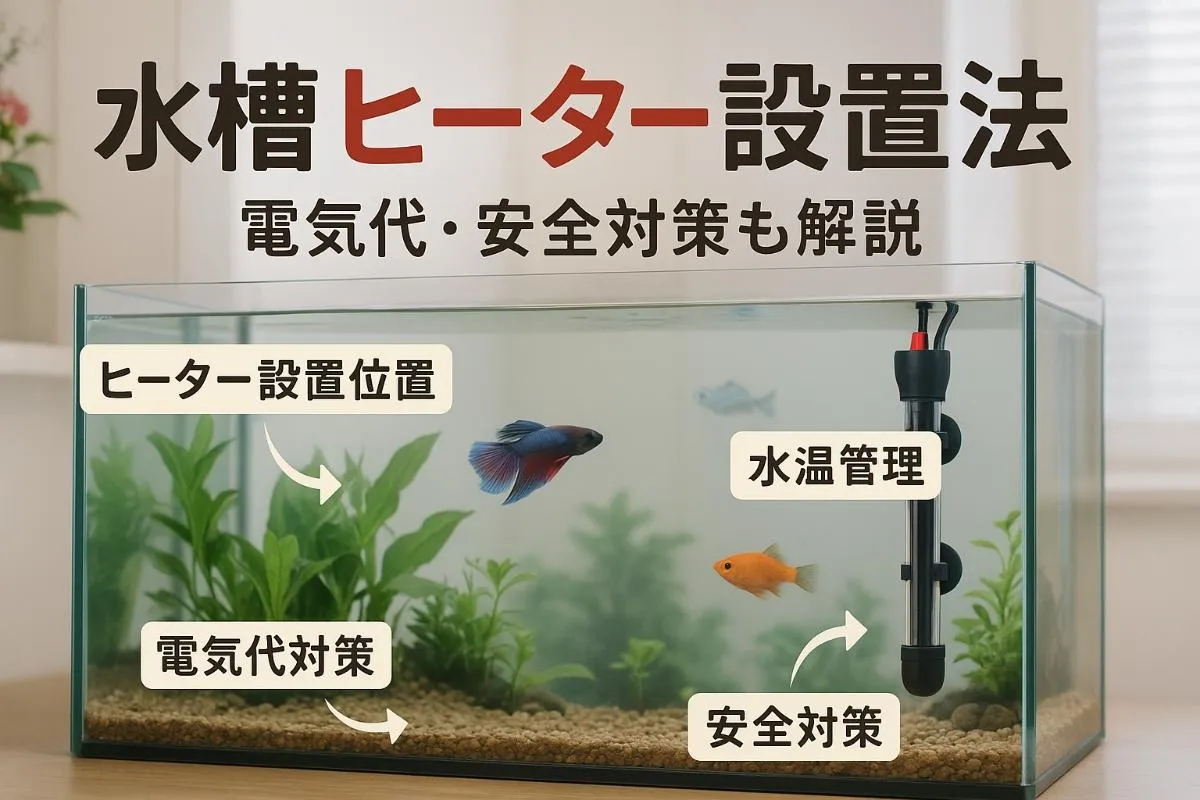 設置時は水槽の奥行や高さに合ったヒーター型を選び、必ずサーモスタットとヒーターカバーを装着し、事故や温度ムラを防ぎます。